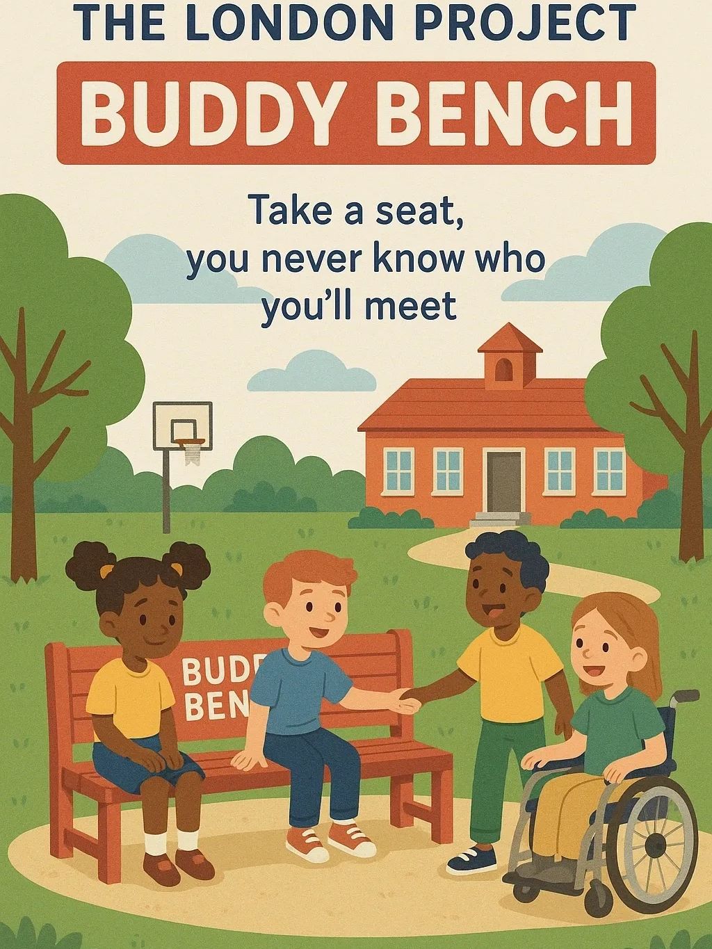 Your donation, in any amount, supports The London Project's Buddy Bench initiative to bring more of these benches to local communities. Donors who wish to sponsor an entire bench will have the opportunity to include their business name, or dedicate it in honor or memory of a loved one, on a permanent plaque.